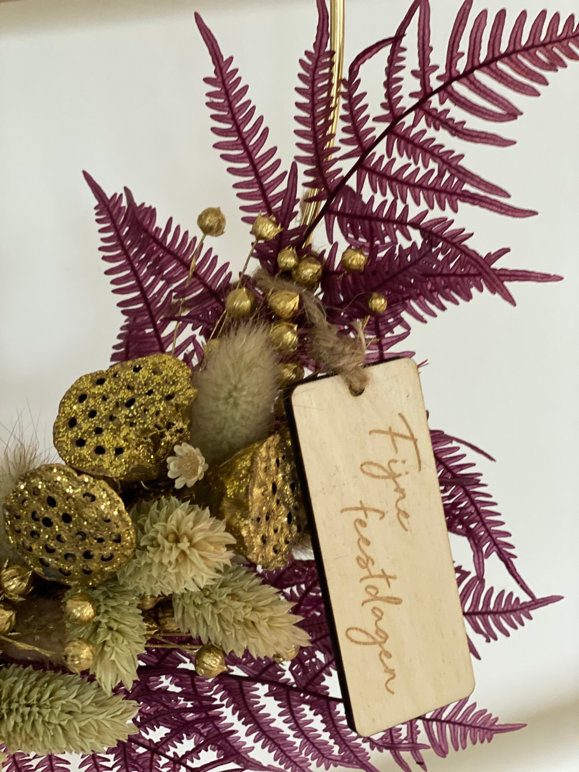 Met houten label: Fijne Feestdagen