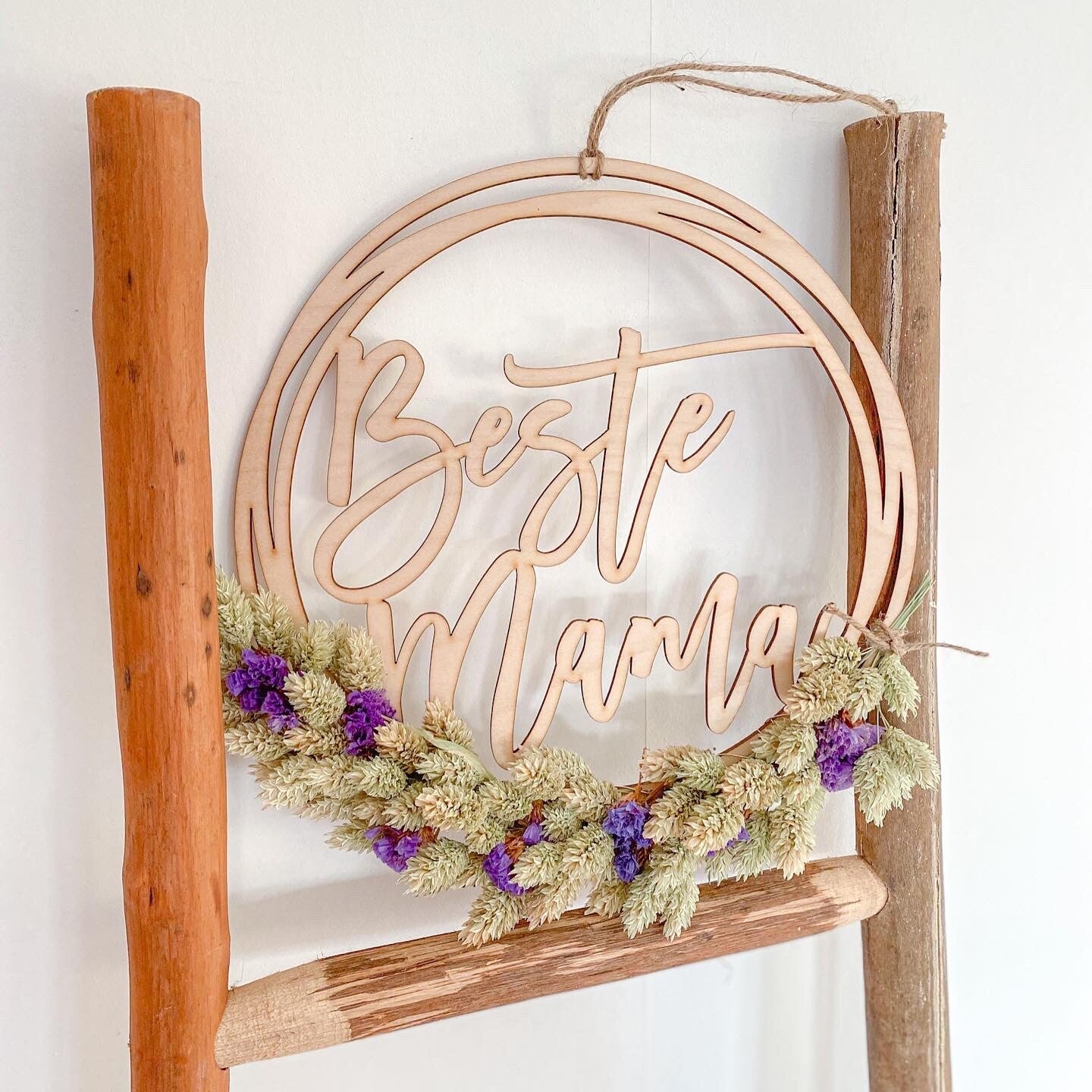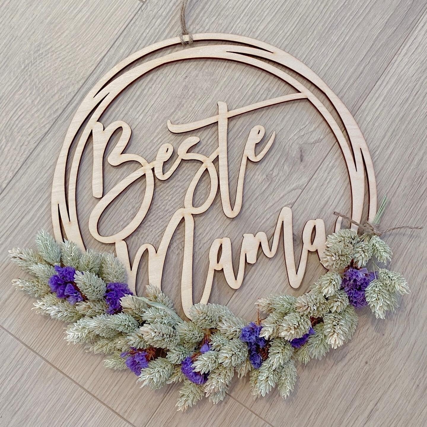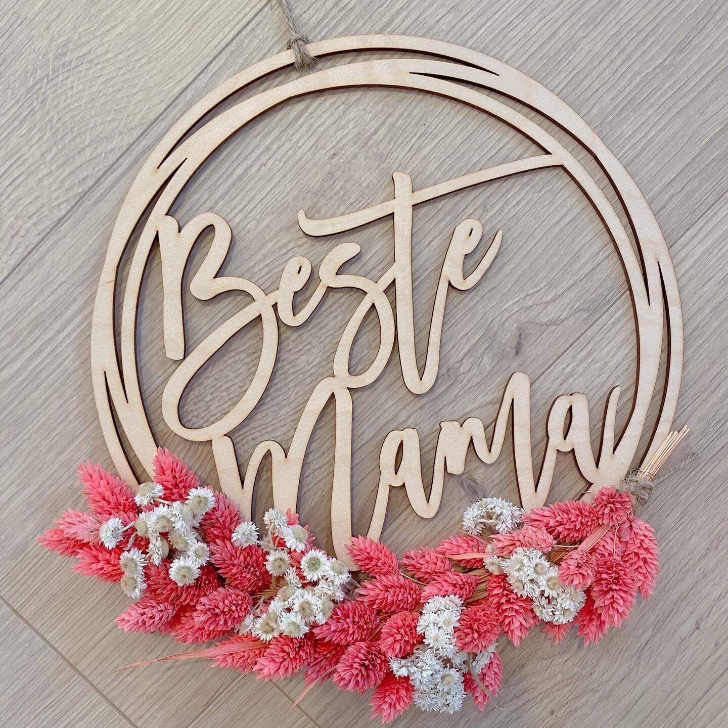 Houten hoepel met droogbloemen keuze uit 2 kleuren: roze en beige met vleugje paars